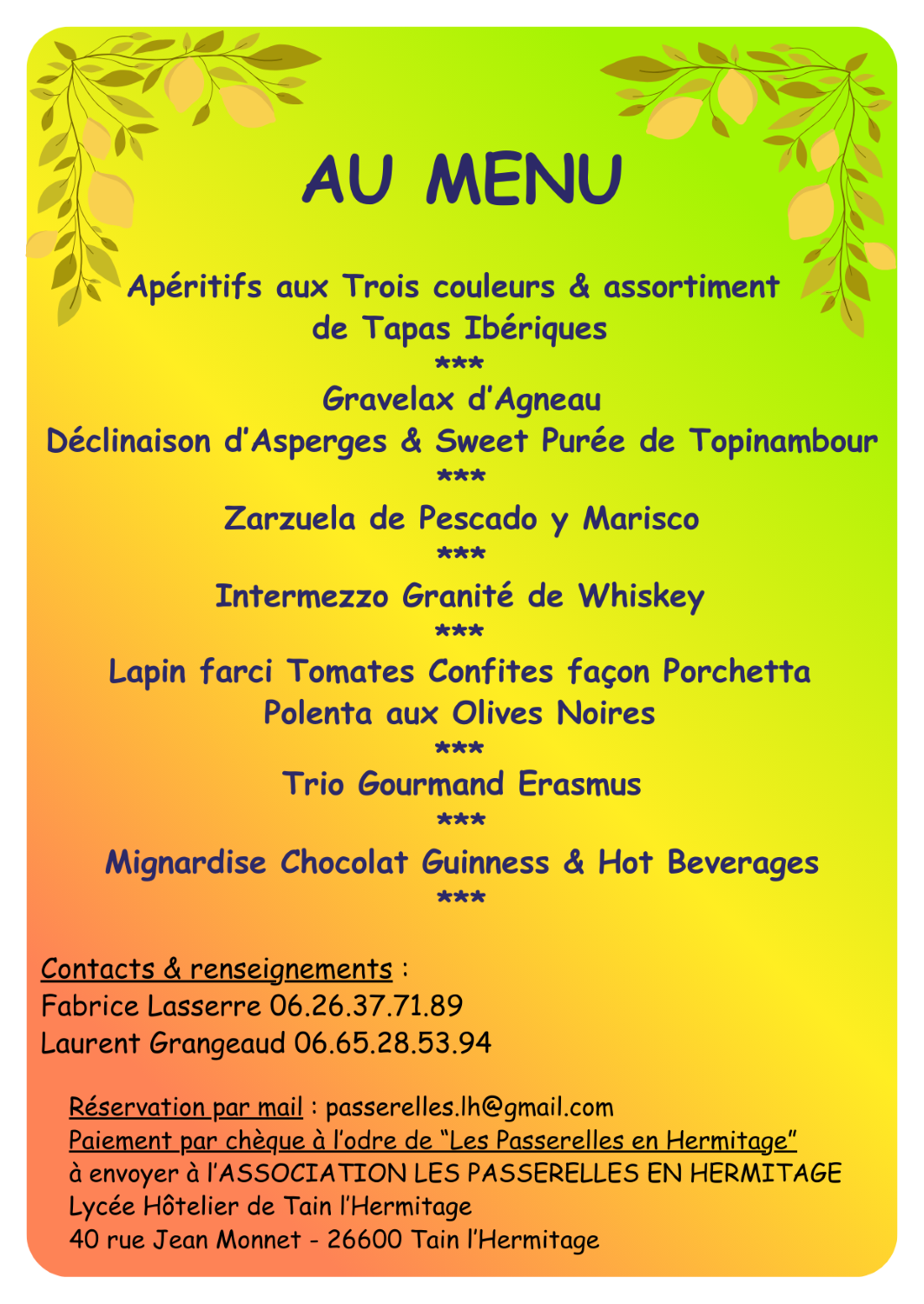 Réservation et information en pièce jointe ci-dessous :
